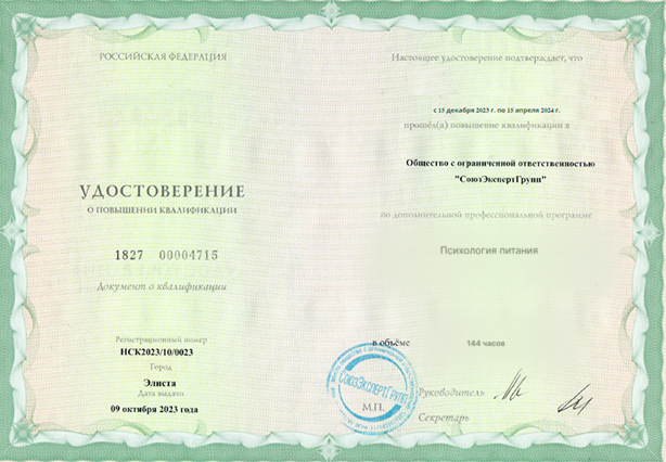 По окончанию обучения Вы получаете удостоверение о повышении квалификации установленного государством образца с внесением сведений о нем в федеральный реестр ФИС ФРДО. Такое удостоверение Вы можете смело прикладывать к портфолио при следующем прохождении периодической аккредитации. Кроме того, вы получите электронный сертификат.